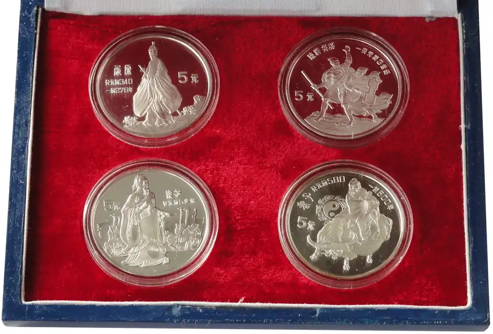 China 4 x 5 Yuan Silber Große Persönlichkeiten 1985 Polierte Platte mit Etui Gleich Bestellen