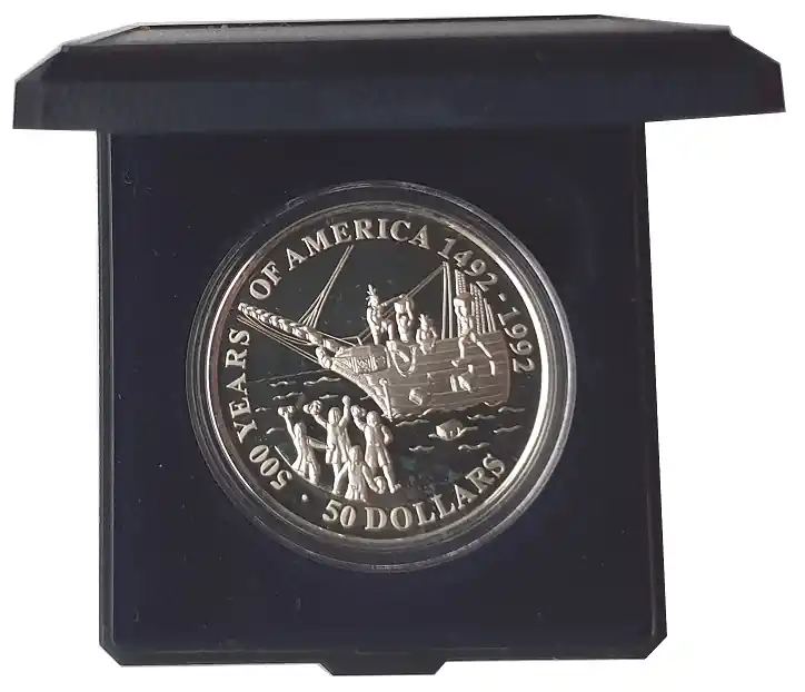 Cook Inseln 50 Dollars 1991 Silbermünze 500 Jahre America – Boston Tea Party