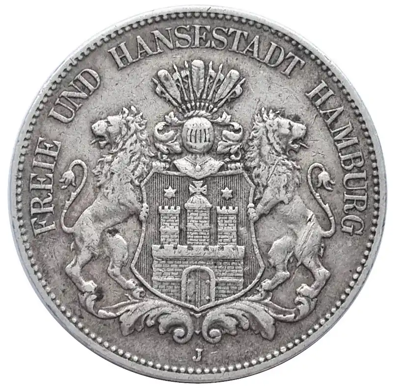 Start » Silbermünzen » Deutsches Kaiserreich 5 Mark Silber Freie und Hansestadt Hamburg 1904 J Top-Preis