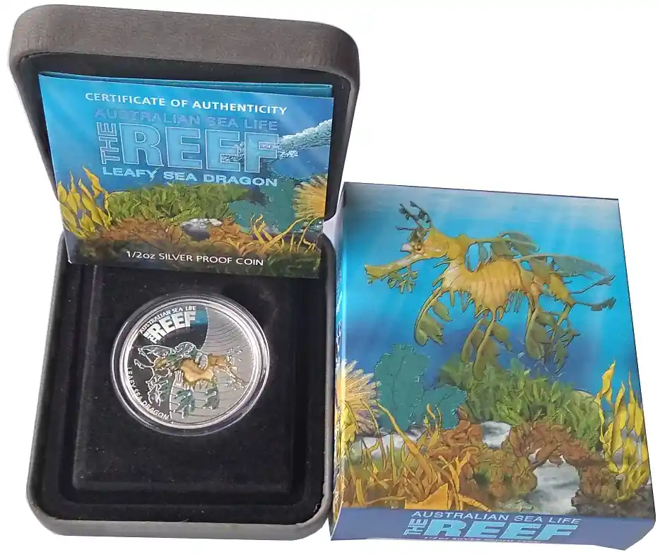 Start » Silbermünzen » Direkt Vom Hersteller Australien 1/2 Oz Silber Leafy Sea Dragon 2009 Polierte Platte Sea Life Serie