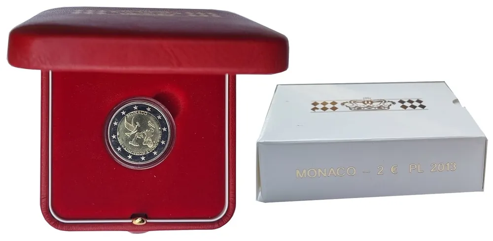 Monaco 2 Euro Gedenkmünze 20 Jahre UNO Mitgliedschaft 2013 PL Prooflike im Etui