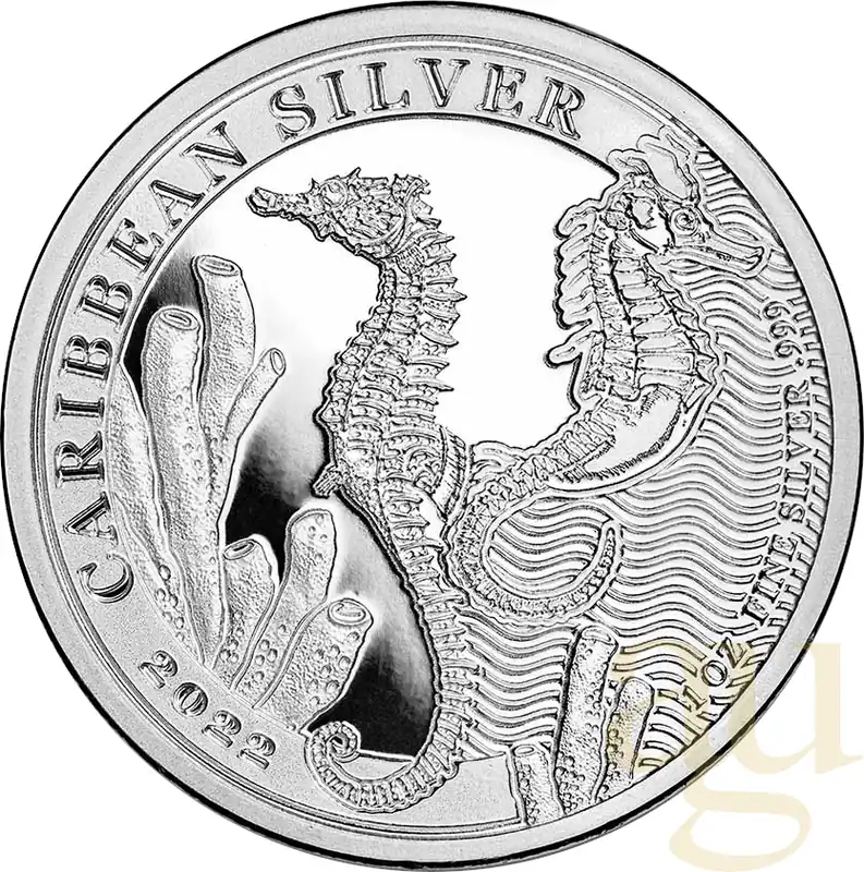 Expressversand 1 Unze Silbermünze Barbados Seepferdchen 2022