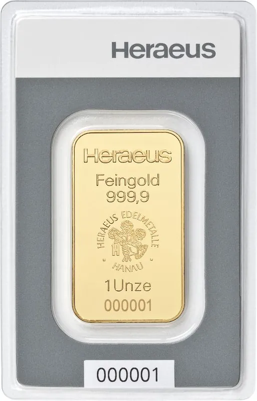 Herkunftsland:DeutschlandHersteller:HeraeusSerie:HeraeusFeingewicht:31,1 GrammFeinheit:999.9/1.000Blisterlänge:85,00 mmBlisterbreite:55,00 mmLänge:40,40 mm Breite:23,30 mmDicke:1,80 mmErhaltung:NeuwareVerpackung:Blisterkarte mit Zertifikat und Seriennummer