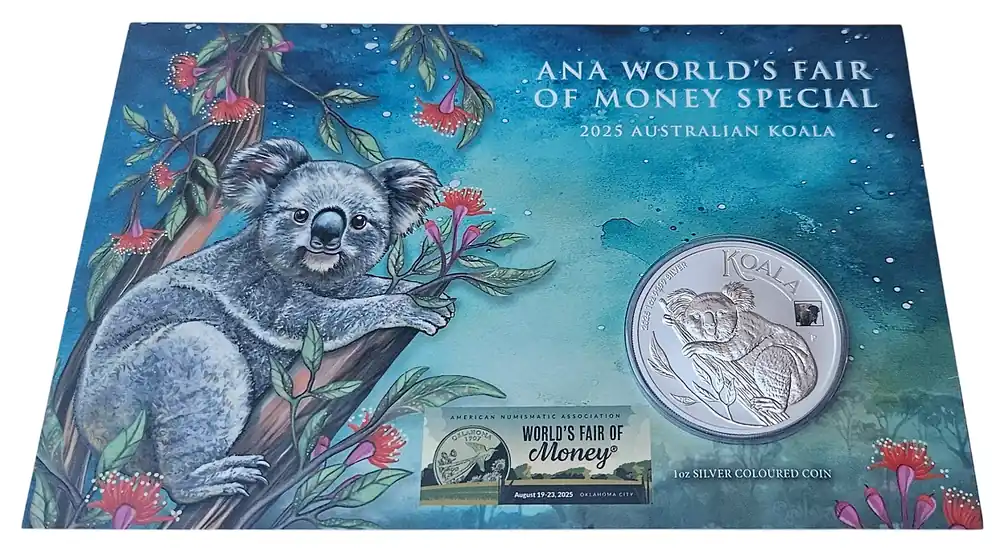 Start » Silbermünzen » Finale Aktion Australien 1 Oz Silber Koala Privy Mark Bison 2025 – Oklahoma City Ana World's Fair of Money Special