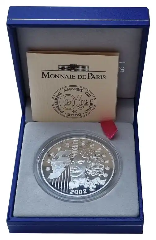 Frankreich 1,5 Euro Silber 2002 Polierte Platte im Etui – Einführung des Euros