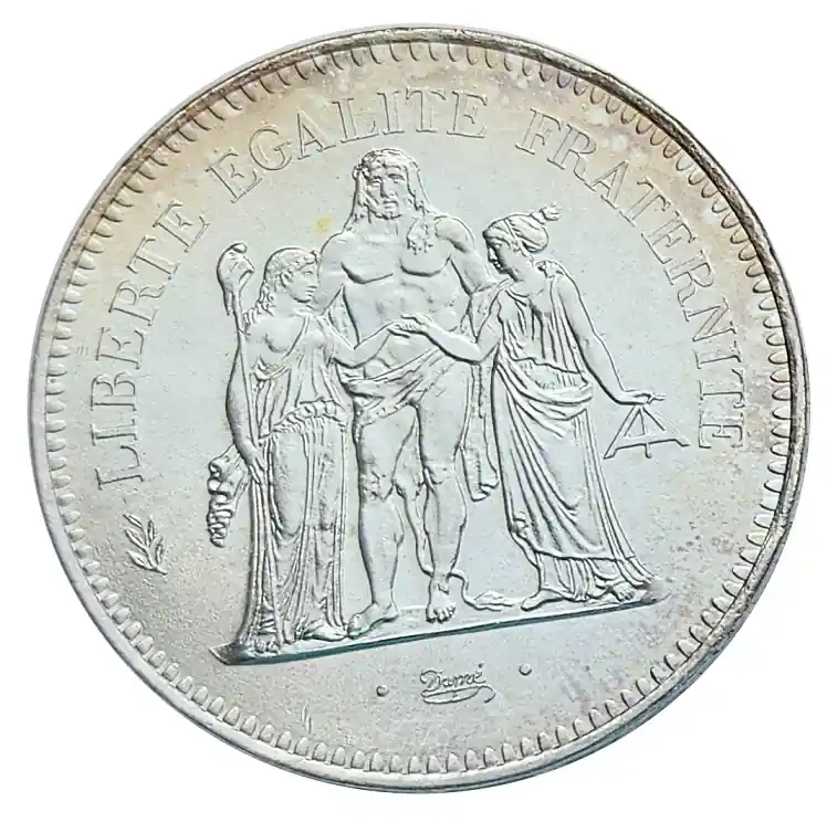 Frankreich 50 Francs Silber Herkulesgruppe 1974 Stempelglanz mit Zertifikat