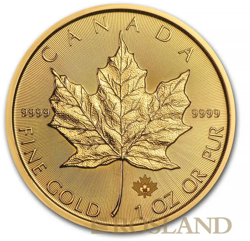Diese wunderschöne 1 Unze Goldmünze Kanada Maple Leaf 2016 mit der Prägequalität Stempelglanz aus dem Jahr 2016 besitzt einen Edelmetallanteil von 99,99% Feingold, sowie ein Feingewicht von 31,10g und wird mit einer Stückelung von 1 Unze in einer Münztas…