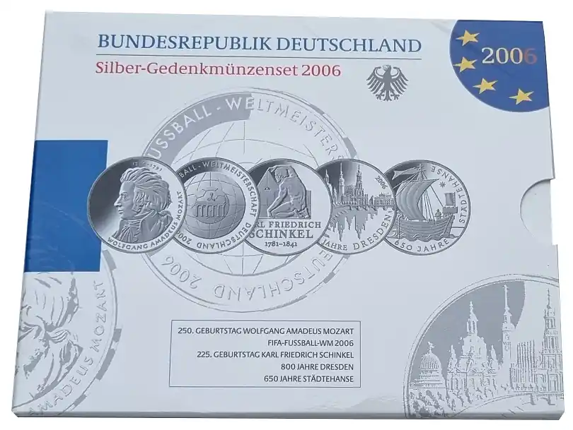 5 x 10 Euro Silber Gedenkmünzenset Deutschland 2006 Spiegelglanz im Folder
