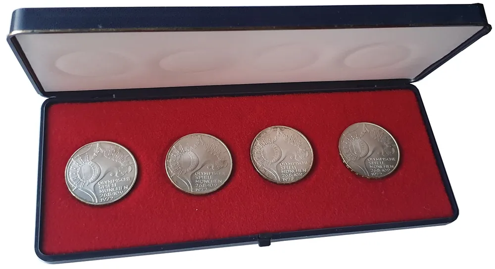 BRD: 4 x 10 DM Silbermünzen DFGJ Stadion – Olympische Spiele 1972 München