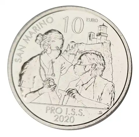 San Marino 10 Euro Münze Institut für Soziale Sicherheit (Corona Pandemie) 2020 Lose