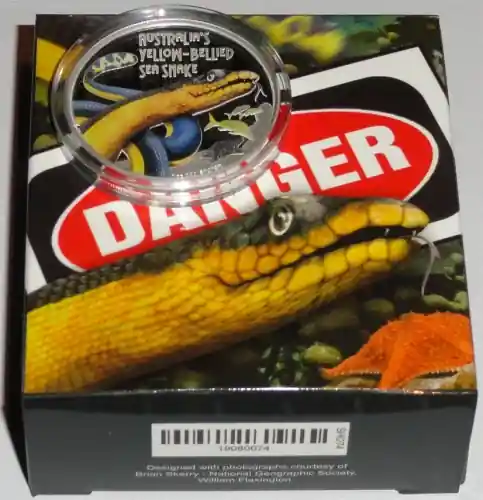 Handgefertigt Tuvalu 1 Oz Silber Yellow Bellied Sea Snake 2013 Polierte Platte – Deadly and Dangerous Serie
