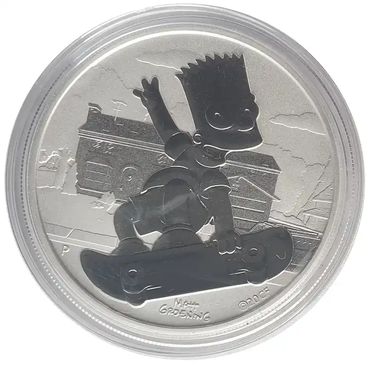 Start » Silbermünzen » Heißes Angebot 1 Unze Silber Bart Simpson 2020 BU Tuvalu Bullionmünze – Anlagemünze