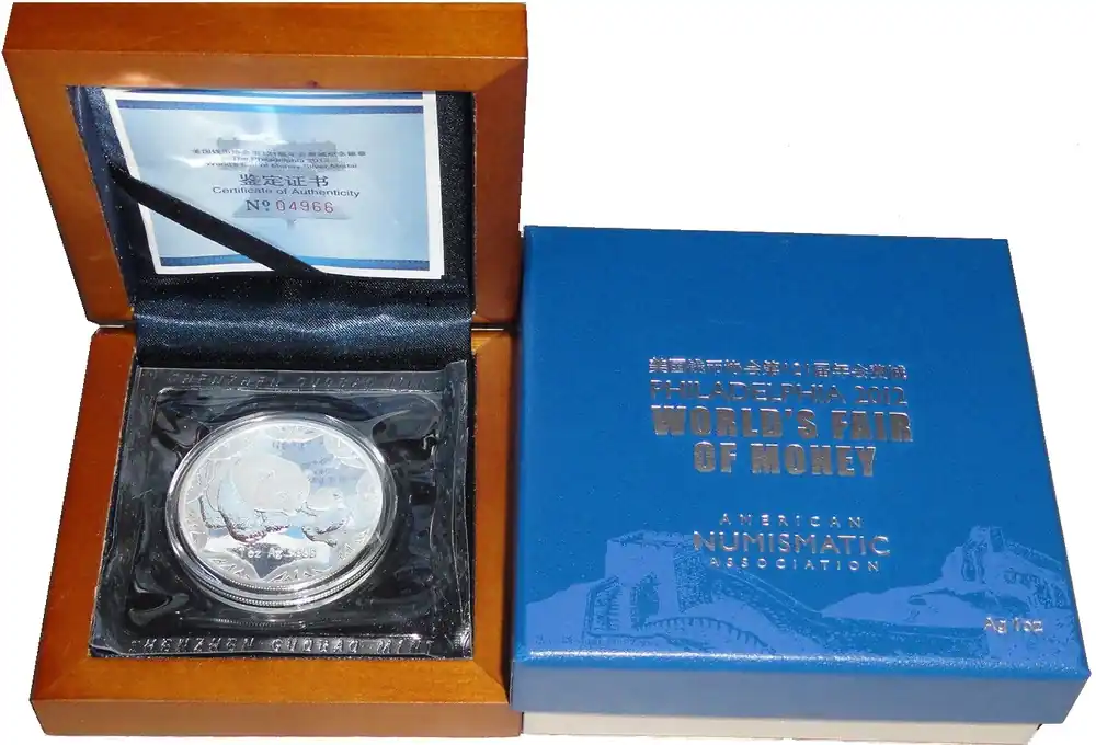 Start » Silbermünzen » Heißes Angebot China 1 Oz Silber Panda Münzmesse ANA Philadelphia 2012 PP Etui