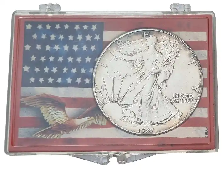 Start » Silbermünzen » Heute Kaufen USA 1 Dollar 1 Oz Silber American Eagle 1987 im Plastiketui