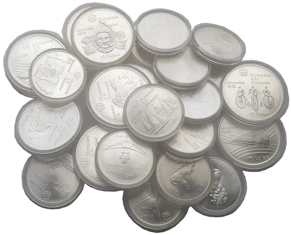Kanada 28 Silbermünzen Olympiade Montreal 1976 Komplettsatz in Münzkapseln