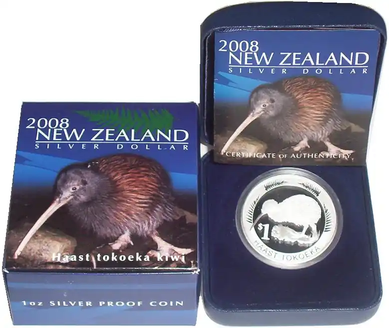 Start » Silbermünzen » Hochwertig Neuseeland 1 Oz Silber Kiwi 2008 PP im Etui