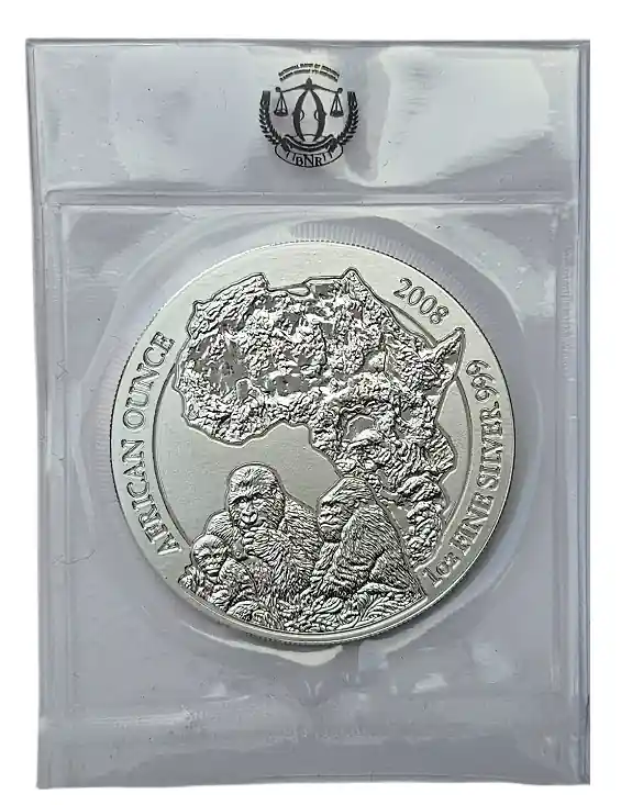 Ruanda 1 Oz Silber Berggorilla 2008 BU in Original Folie verschweist