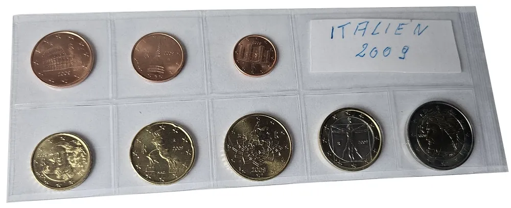 Start » Euromünzen » Italien 3,88 Euro Kursmünzensatz 2009 lose Bankfrisch Geld-Zurück-Garantie