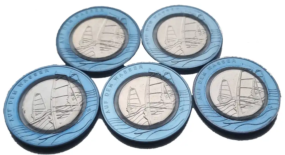Start » Euromünzen » Jetzt Kaufen 5 x 10 Euro auf dem Wasser 2021 ADFGJ Komplettsatz Stempelglanz mit farblosem Polymerring