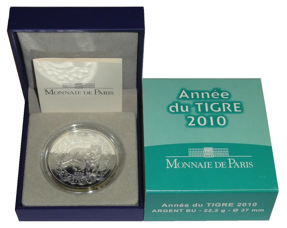 Jetzt Kaufen Frankreich 5 Euro Silbermünze Tiger 2010 BU im Etui