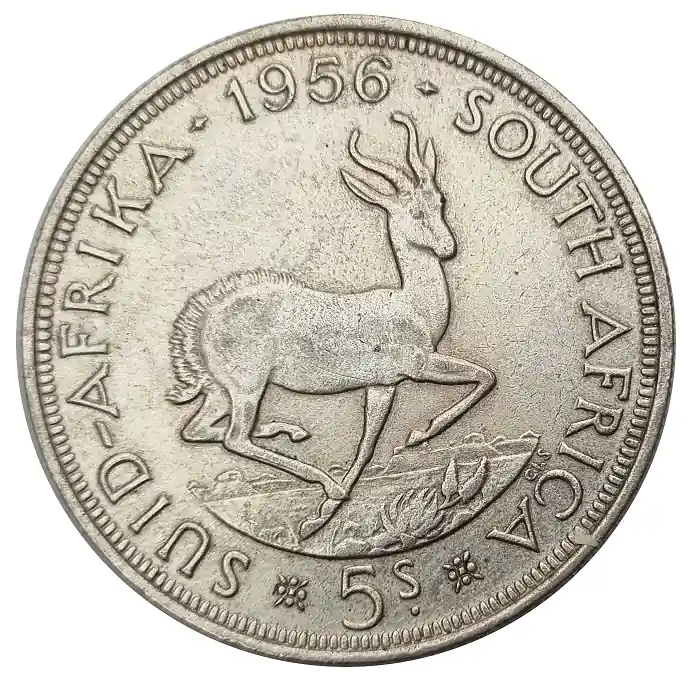 Südafrika 5 Shilling Silbermünze Springbock 1956 – Queen Elizabeth II
