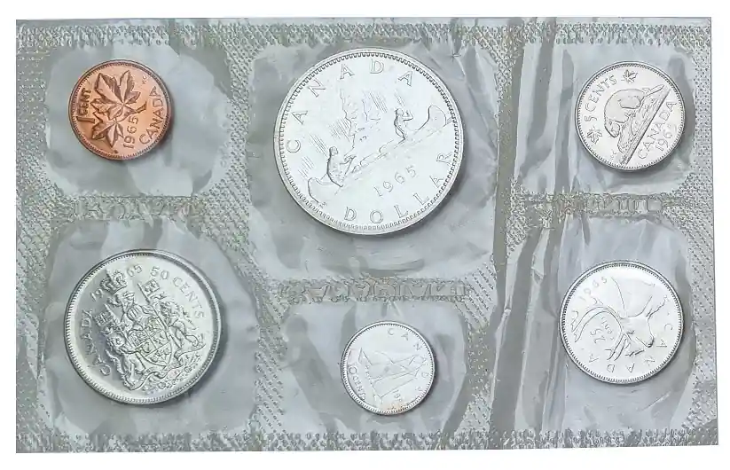 Kanada 1,91 Dollars Kursmünzensatz 1965 in Folie verschweist mit Silbermünzen