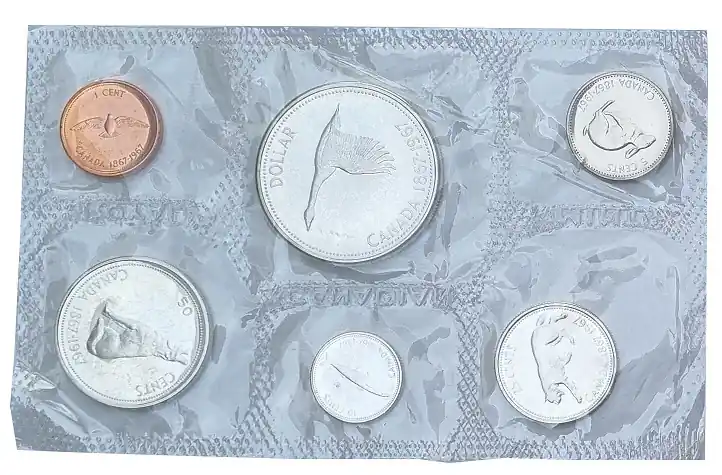 Kanada 1,91 Dollars Kursmünzensatz 1967 in Folie verschweist mit Silbermünzen