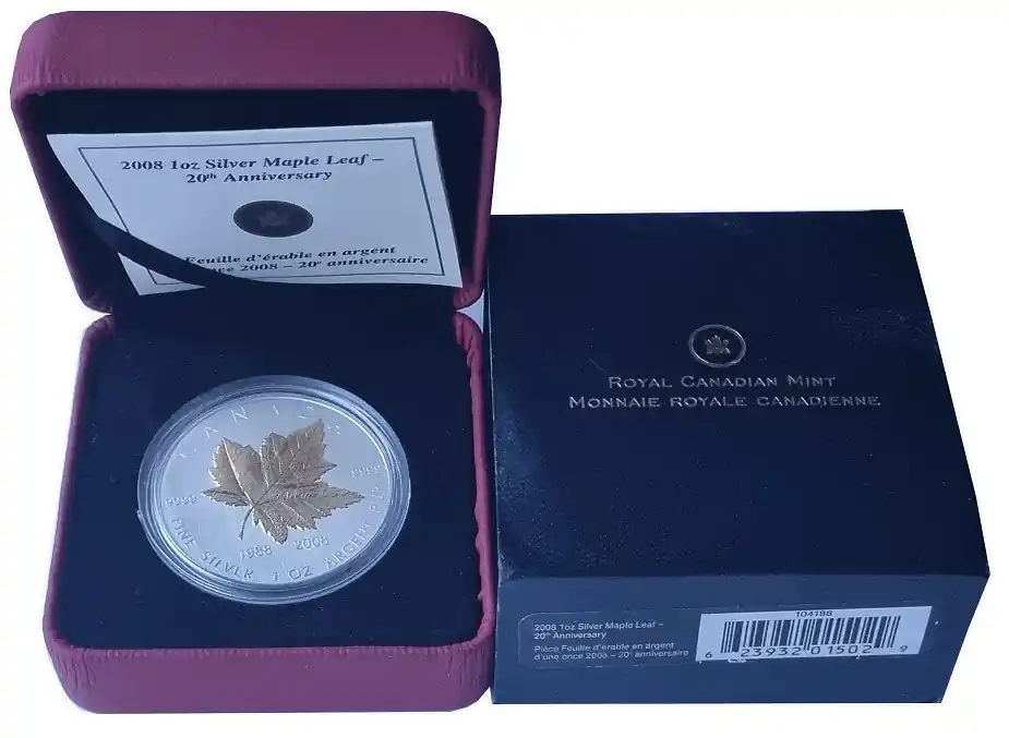 Kanada 1 Oz Silber Maple Leaf 2008 vergoldet (Gilded) Stempelglanz
