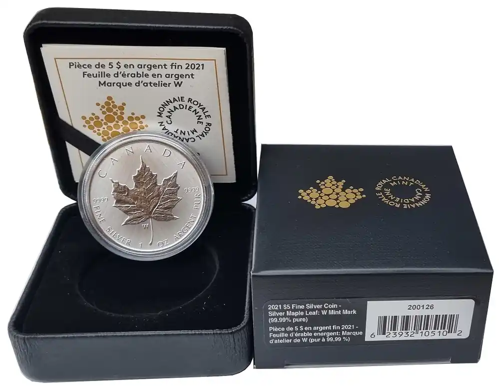 Kanada 1 Oz Silber Maple Leaf 2021 – Mint Mark W Stempelglanz Ausverkauf