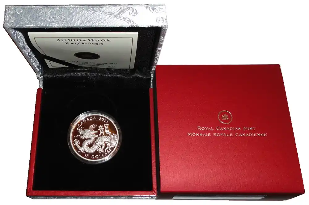 Kanada 15 Dollars 1 Oz Siber Drache 2012 PP im Etui Preiswert
