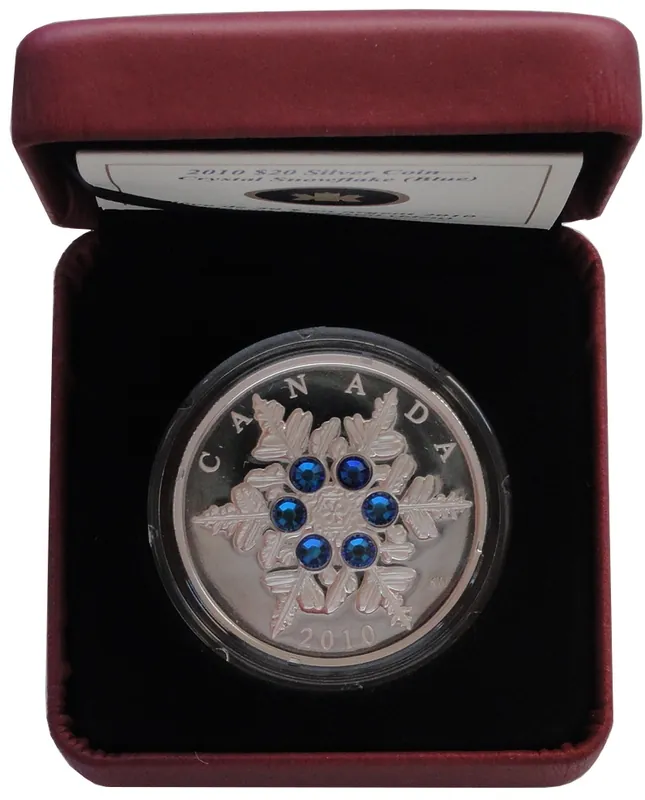 Kanada 20 Dollars 1 Oz Silber Crystal Snowflake (Schneeflocke) Blau 2010 PP im Etui
