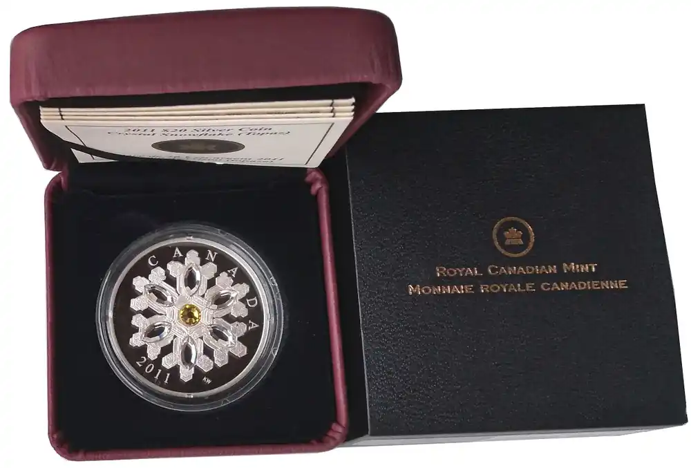 Kanada 20 Dollars 1 Oz Silber Schneekristall Topaz (Topas) 2011 Polierte Platte