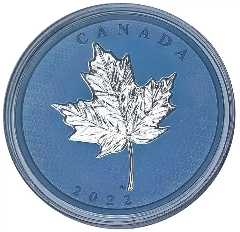 Kanada 5 Oz Silber Maple Leaf 2022 mit Blue Rhodium veredelt Polierte Platte nur 1.500 Stück!