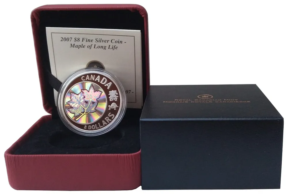 Kanada 8 Dollars Silber Maple Leaf 2007 Hologramm Long Life Polierte Platte im Etui Beliebt