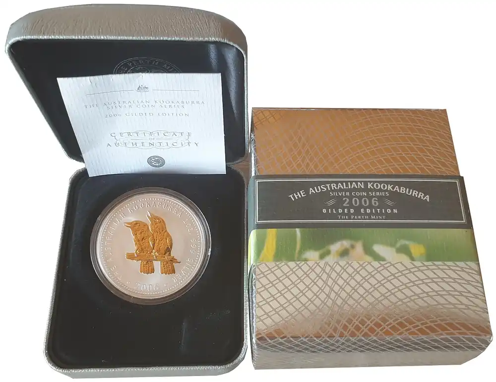 Start » Silbermünzen » Kostenfreie Lieferung 1 Oz Silber Kookaburra – vergoldet (Gilded) 2006 im Etui aus Australien
