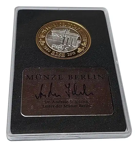 Kostenfreie Lieferung Silbermedaille 25 Jahre Deutsche Einheit Spiegelglanz im Plastiketui mit Zertifikat