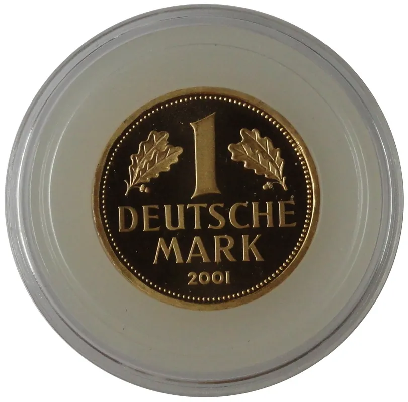 Start » Goldmünzen » Kostenloser Rückversand Deutschland Goldmünze 1 DM Goldmark 2001 Prägebuchstabe G Karlsruhe