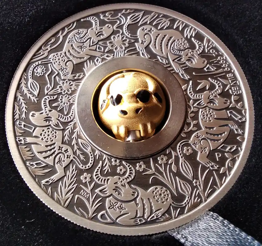Start » Silbermünzen » Kostenloser Versand Tuvalu 1 Oz Silber Rotating Charm Ochse Antik Finish 2021