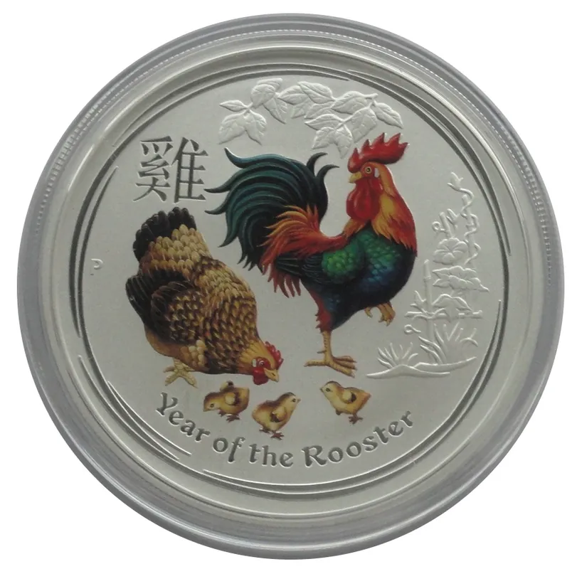 Start » Silbermünzen » Kracherpreis Australien 2 Oz Silber Lunar II Hahn Farbe 2017