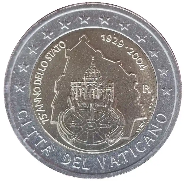 Vatikan 2 Euro Gedenkmünze 75 Jahre Gründung Vatikanstadt – Petersdom 2004 in Münzkapsel