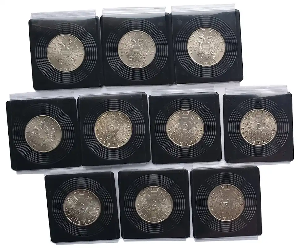 Limited Edition 10 x 2 Schilling Silbermünzen 1928 – 1937 Komplettsatz aus Österreich