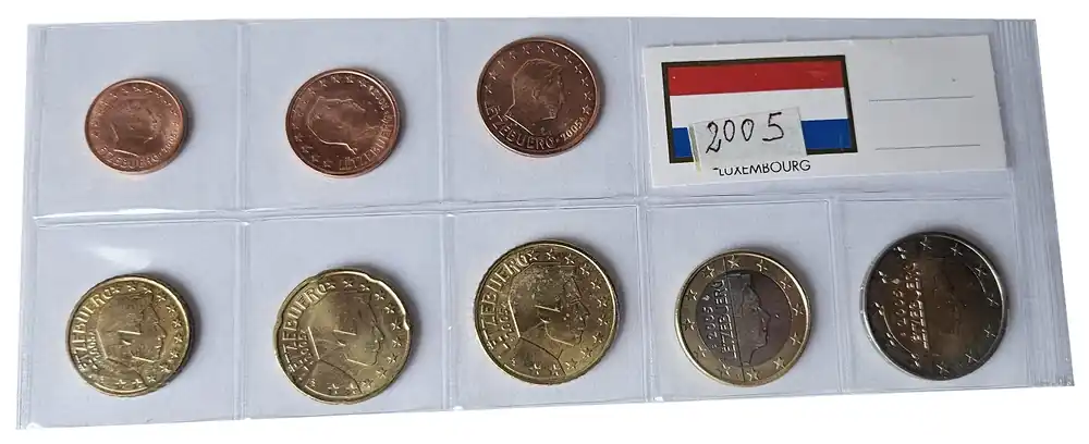 Start » Euromünzen » Luxemburg 3,88 Euro Kursmünzensatz 2005 lose Bankfrisch Geprüft
