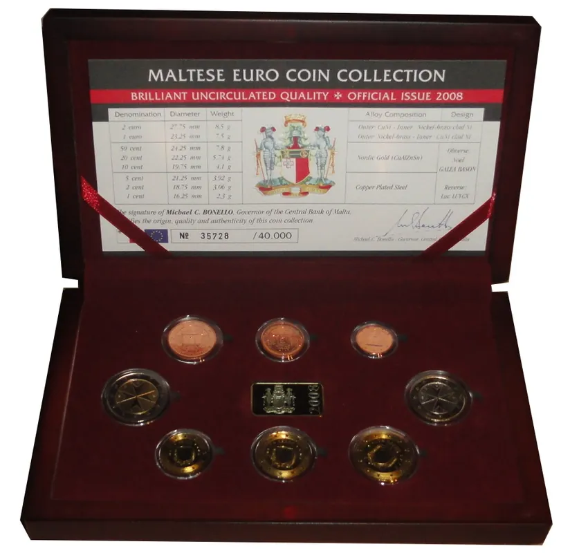 Malta 3,88 Euro Kursmünzensatz 2008 BU Brilliant Unzirkuliert + Jeton Original
