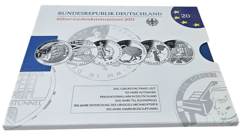 6 x 10 Euro Silber Gedenkmünzenset Deutschland 2011 Spiegelglanz im Folder