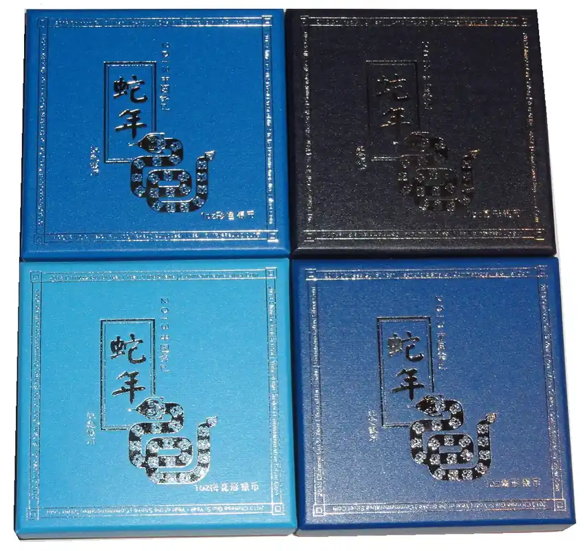 China 4 x 1 Oz Silber Schlange Fächer, PP, Farbe und Flower 2013 im Etui