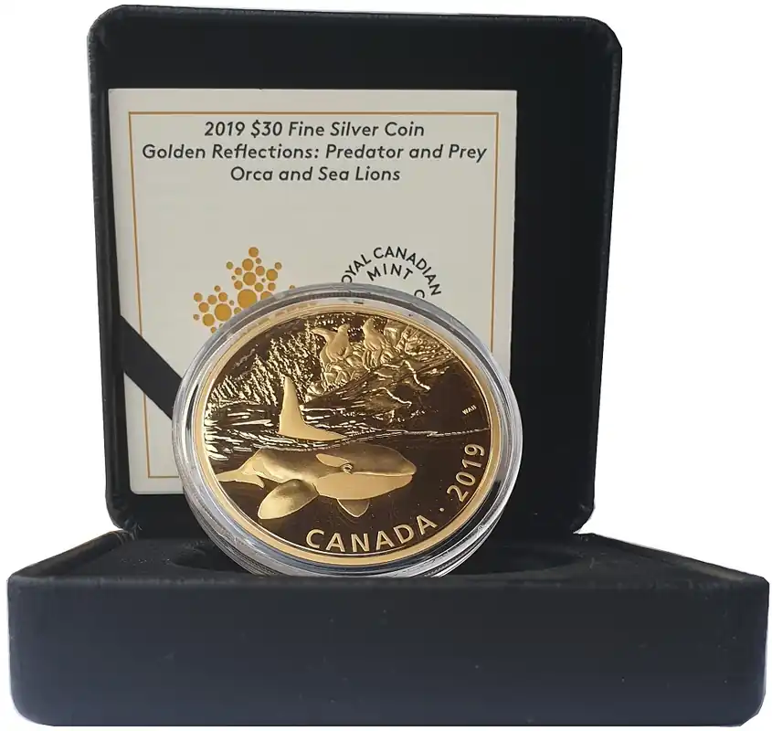 Kanada 30 Dollars – 2 Oz Silbermünze Orca und Seelöwen 2019 Polierte Platte