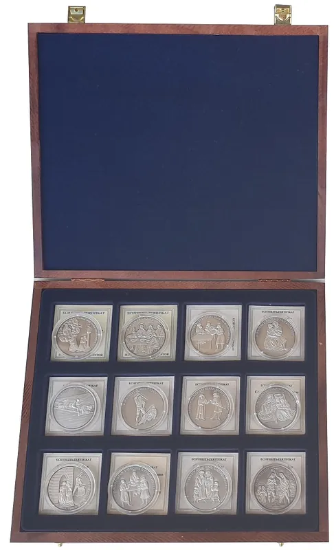 Start » Neu im Shop » Markenprodukt Münzkassette mit 12 Silbermedaillen Geschichte des Christentums Insgesamt 240 gr 999/1000 Silber