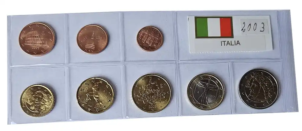 Start » Euromünzen » Mega-Angebot Italien 3,88 Euro Kursmünzensatz 2003 lose Bankfrisch