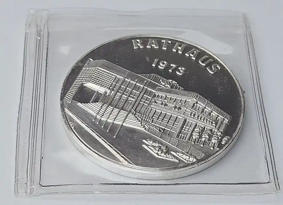 Silbermedaille Stadtwappen Bruchköbel Stadterhebung 7. Mai 1975 – Rathaus 1973