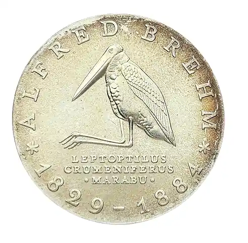 DDR: 10 Mark Silber Gedenkmünze 100. Todestag von Alfred Brehm (Marabu) 1984
